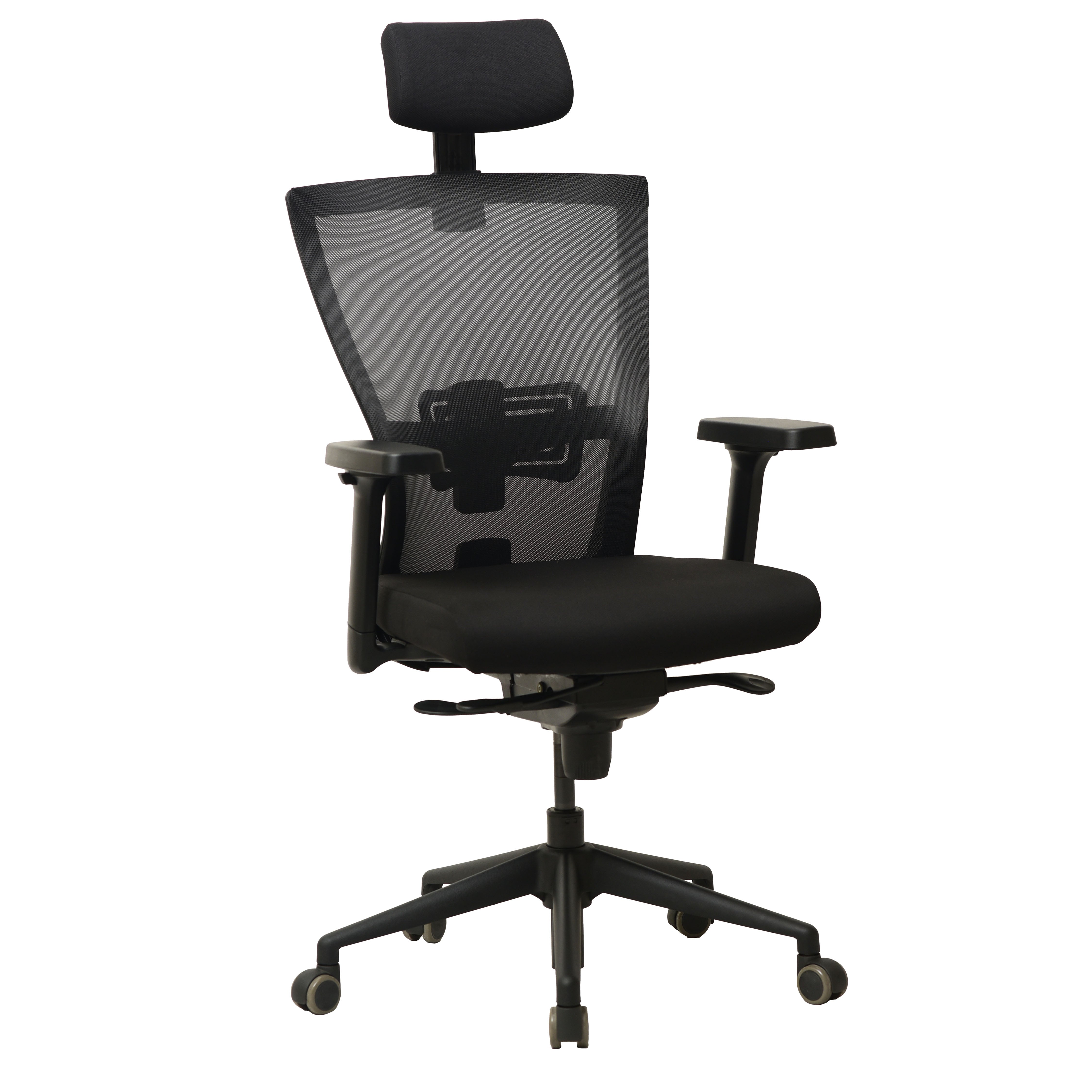 This office chair is designed for comfort and support. It has an adjustable headrest for neck support and a back pad to protect your lower back. The 3D PU armrests can be adjusted for the perfect arm position. The seat can slide forward or backward for a better fit. It also has a tilt mechanism that helps you sit in a comfortable and natural position.